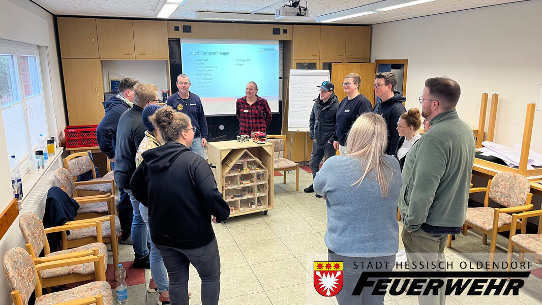 Nach dem Theorieteil und dem Mittagessen 🍽️ wurde es wieder praktisch: Dienste und Dienstgestaltung standen auf dem Plan. Gemeinsam wurde erarbeitet, woher „neue“ Ideen kommen können – ob digital 💻, analog 📝 oder durch den Austausch mit anderen Feuerwehren 🔄🚒. Außerdem wurde ein Blick auf den Ausbildungsanhänger der Stadtfeuerwehr geworfen und besprochen, welche Möglichkeiten dieser für die Arbeit mit der Kinder- und Jugendfeuerwehr bietet. Daraus resultierte auch die Langzeitaufgabe bis zum zweiten Teil des Kurses: die Planung und Gestaltung eines eigenen Dienstes für die Kinder- oder Jugendfeuerwehr 🛠️📋.